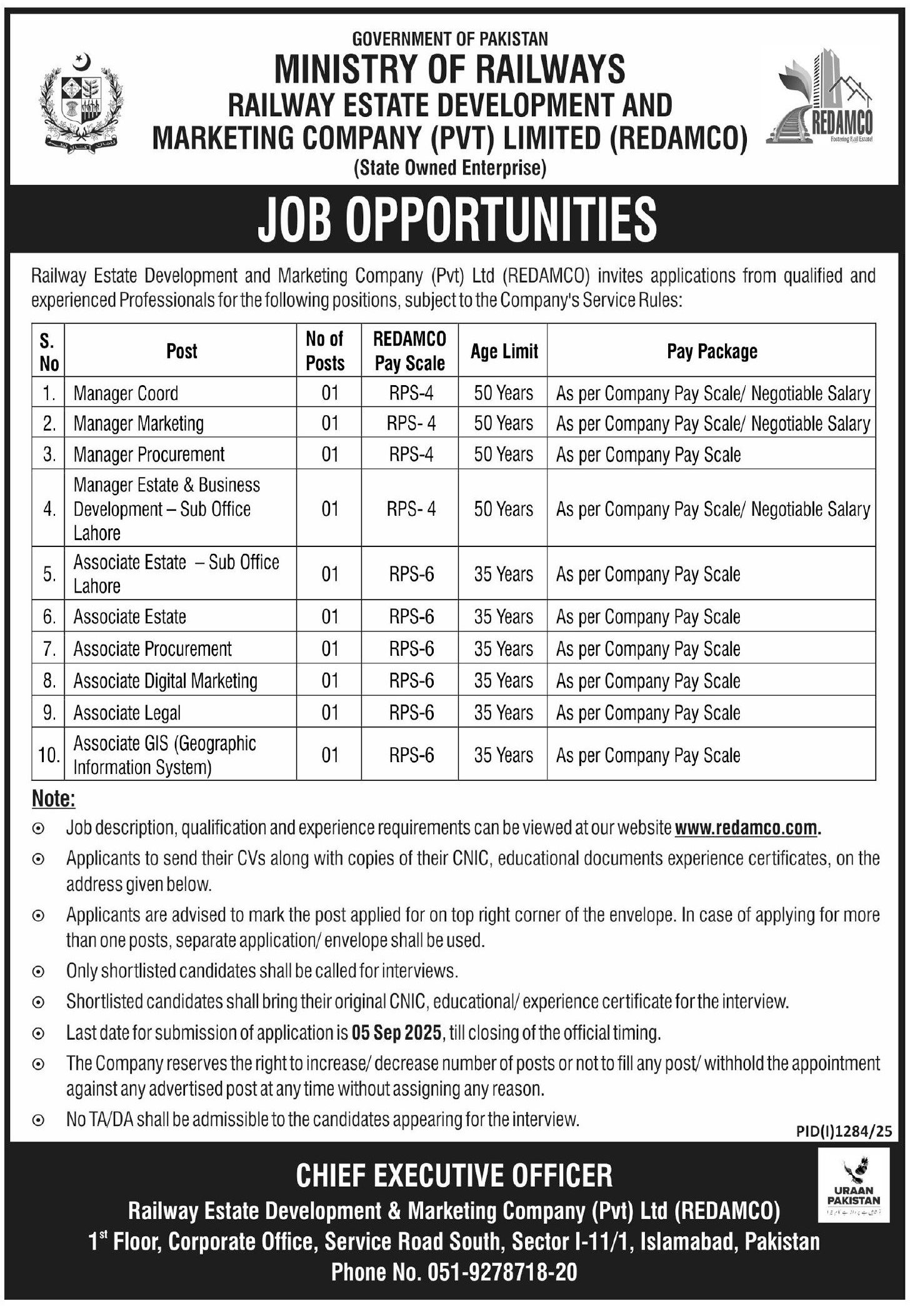 Ministry of Railways announced new jobs for the position of Manager Coordinator, Manager Marketing, Manager Estate Business Development, Associate Estate, Associate Procurement, Associate Digital Marketing, Assistant Legal, Associate Gis. These jobs are related to Management category and Government jobs. The minimum qualification required for this job is Bachelor, Master, MS, BS.