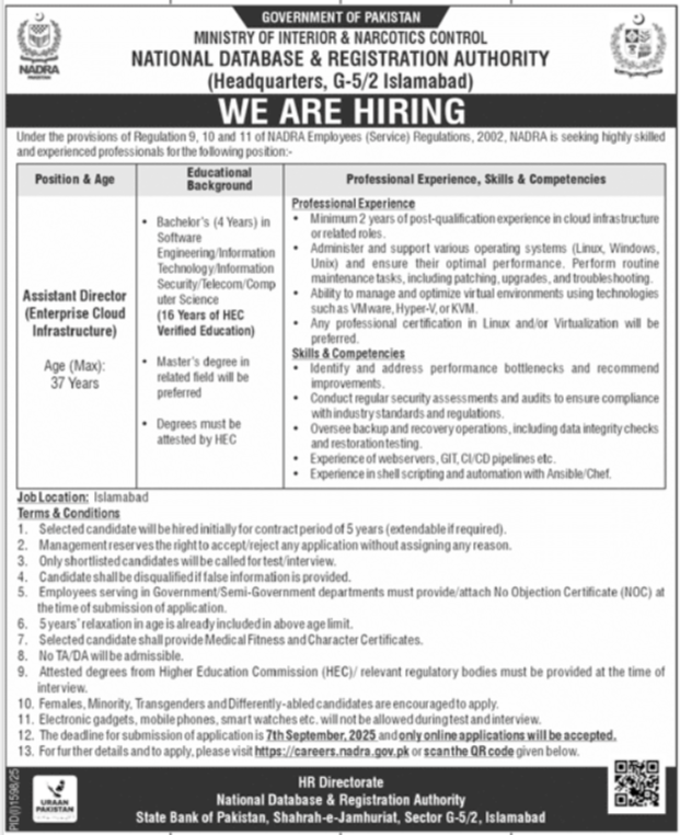 National Database & Registration Authority NADRA announced new jobs for the position of Assistant Director. These jobs are related to Management category and Government jobs. The minimum qualification required for this job is Bachelor.