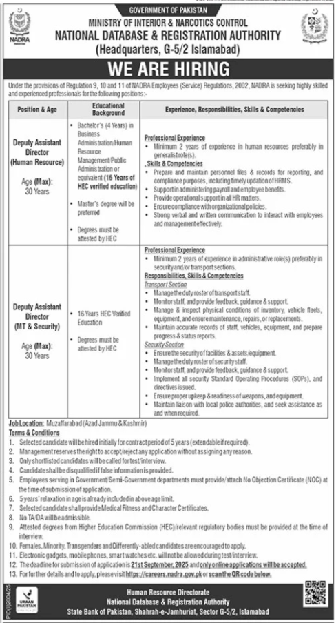 National Database & Registration Authority NADRA announced new jobs for the position of Deputy Assistant Director. These jobs are related to Management category and Government jobs. The minimum qualification required for this job is Bachelor, Master.