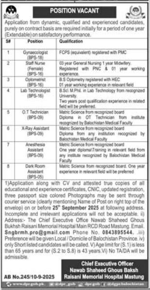 The job is located in Mastung and it is necessary for candidate to read mentioned requirements for available vacancies. Jang newspaper published this job ad on 11 September, 2025. Last date to apply this job is 25 September, 2025