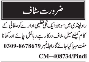 Educational Organization announced new jobs for the position of Sweeper, Sanitary Worker. These jobs are related to School category and Government jobs. The minimum qualification required for this job is Primary, Middle.