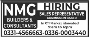 NMG Builders & Consultants announced new jobs for the position of Sales Representative. These jobs are related to Sales category and Government jobs. The minimum qualification required for this job is Matric, Intermediate, Bachelor.