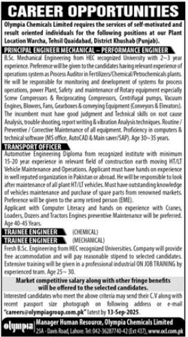 Olympia Chemicals Limited announced new jobs for the position of Principal, Transport Officer, Trainee Engineer. These jobs are related to Management category and Government jobs. The minimum qualification required for this job is Bachelor, Master.