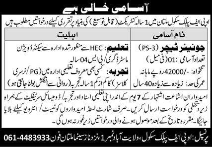 OPF Public School announced new jobs for the position of Teacher. These jobs are related to Teaching category and Government jobs. The minimum qualification required for this job is Master, BS.