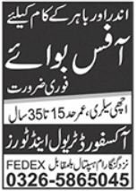 Oxford Travels and Tours announced new jobs for the position of Office Boy. These jobs are related to Labor category and Government jobs. The minimum qualification required for this job is Primary, Middle.