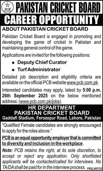 Pakistan Cricket Board PCB announced new jobs for the position of Deputy Chief Curator, Turf Administrator. These jobs are related to Management category and Government jobs. The minimum qualification required for this job is Bachelor.