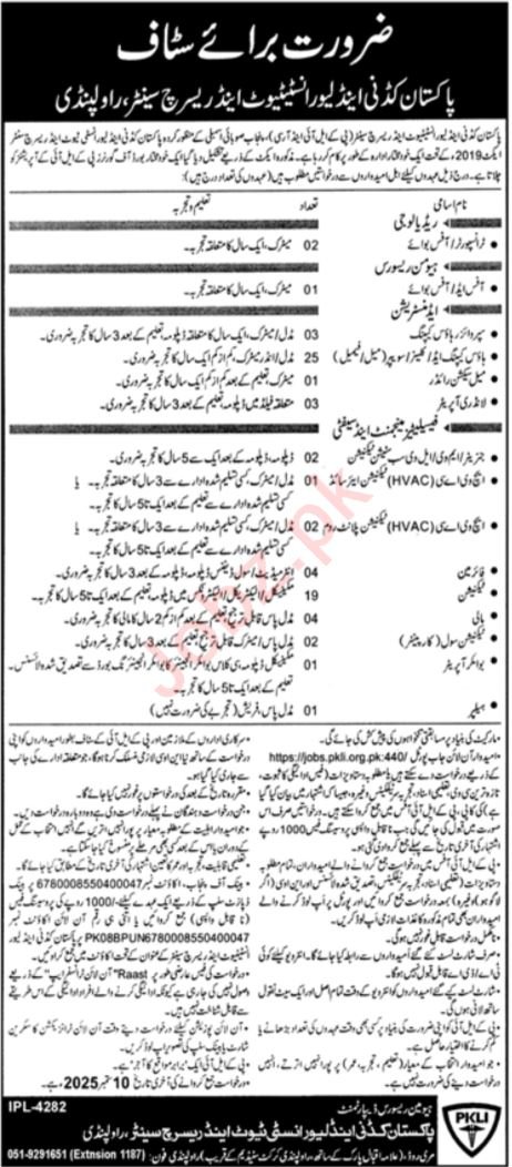 Pakistan Kidney And Liver Institute And Research Centre PKLI announced new jobs for the position of Transporter, Office Boy, Supervisor, House Keeping, House Keeping Aid, Cleaner, Sweeper, Male Section Rider, Laundry Operator, Generator Technician, Mvlv Sub Station Technician, Hvac Technician Air Side, Hvac Technician Plant Room, Fireman, Technician, Mali, Technician Civil, Carpenter, Boiler Operator, Helper. These jobs are related to Education category and Government jobs. The minimum qualification required for this job is Middle, Matric.