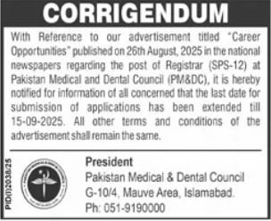Pakistan Medical and Dental Council announced new jobs for the position of Registrar. These jobs are related to Medical category and Government jobs. The minimum qualification required for this job is Bachelor, Master, Mphil, Phd.