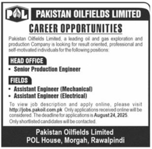 Pakistan Oilfields Limited POL announced new jobs for the position of Production Engineer, Assistant Engineer. These jobs are related to Management category and Government jobs. The minimum qualification required for this job is Bachelor.