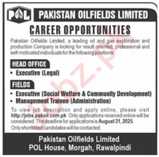 Pakistan Oilfields Limited POL announced new jobs for the position of Executive Legal, Executive, Management Trainee. These jobs are related to Management category and Government jobs. The minimum qualification required for this job is Bachelor, Master, MS, BS.