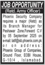 Phoenix Security Company Pvt Limited announced new jobs for the position of Retired Army Officer. These jobs are related to Security category and Government jobs. The minimum qualification required for this job is Matric, Intermediate.