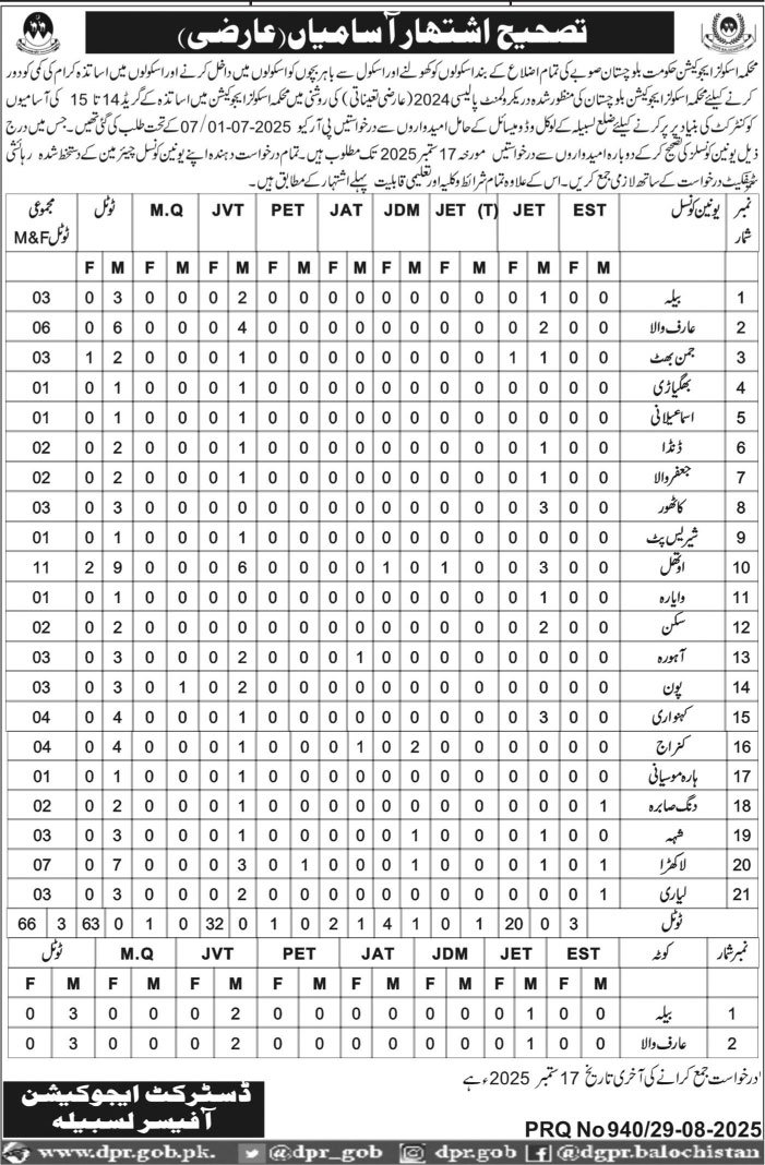 The job is located in Lasbela and it is necessary for candidate to read mentioned requirements for available vacancies. Other newspaper published this job ad on 30 August, 2025. Last date to apply this job is 17 September, 2025
