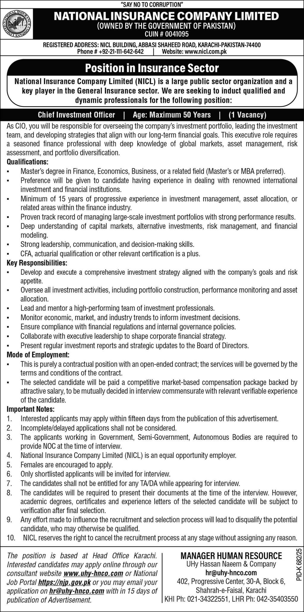 National Insurance Company Limited NICL announced new jobs for the position of Chief Investment Officer. These jobs are related to Management category and Government jobs. The minimum qualification required for this job is Master.