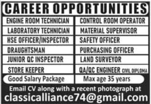 Private Company announced new jobs for the position of Engine Room Technician, Laboratory Technician, Hse Officer, Hse Inspector, Draughtsman, Qc Inspector, Store Keeper, Control Room Operator, Material Supervisor, Safety Officer, Purchasing Officer, Land Supervisor, Qa Engineer, Qc Engineer. These jobs are related to Management category and Government jobs. The minimum qualification required for this job is Matric, Intermediate, Bachelor.