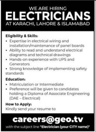 Private Group announced new jobs for the position of Electrician. These jobs are related to Management category and Government jobs. The minimum qualification required for this job is Middle, Matric, Intermediate.