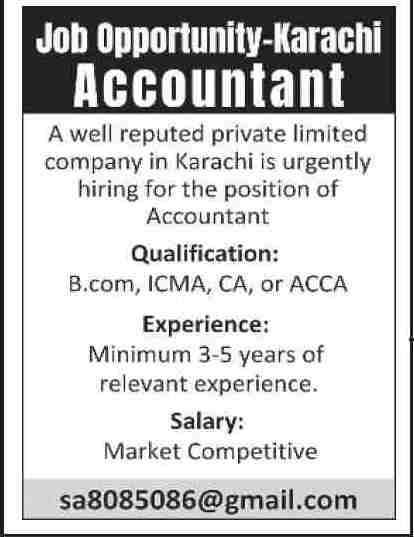 Private Limited Company announced new jobs for the position of Accountant. These jobs are related to Accounting category and Government jobs. The minimum qualification required for this job is Bachelor, Master, MS, BS.
