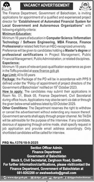 The job is located in Quetta and it is necessary for candidate to read mentioned requirements for available vacancies. Jang newspaper published this job ad on 19 September, 2025. Last date to apply this job is 03 October, 2025