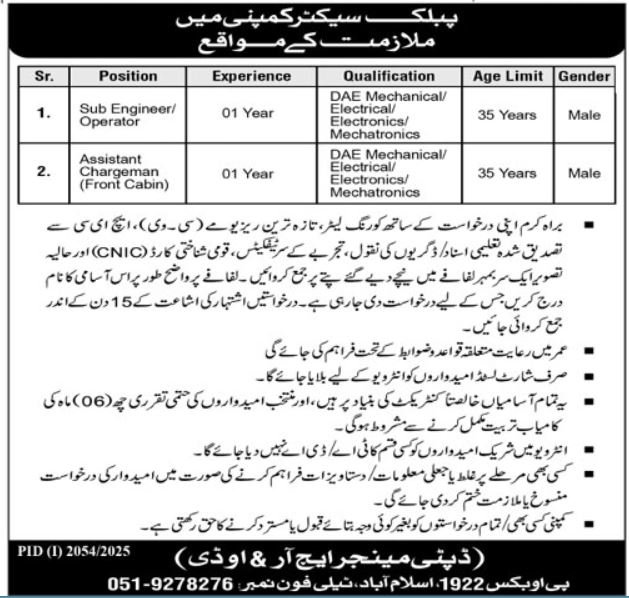 Public Sector Company announced new jobs for the position of Sub Engineer, Operator, Assistant Chargeman. These jobs are related to Management category and Government jobs. The minimum qualification required for this job is Intermediate, Bachelor, DAE.