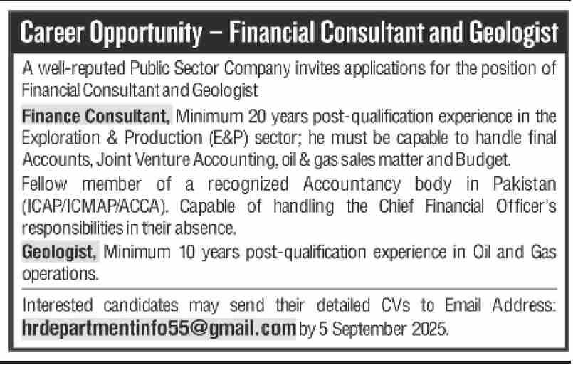 Public Sector Company announced new jobs for the position of Finance Consultant, Geologist. These jobs are related to Management category and Government jobs. The minimum qualification required for this job is Bachelor, Master, MS, BS.