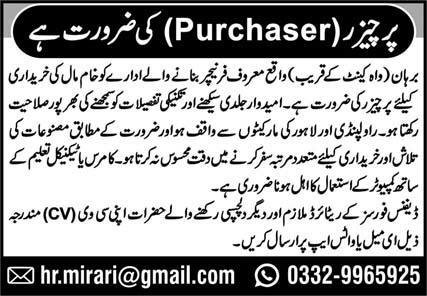Furniture Munfacturing Company announced new jobs for the position of Purchaser. These jobs are related to Management category and Government jobs. The minimum qualification required for this job is Bachelor.