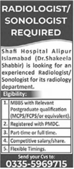 Shafi Hospital announced new jobs for the position of Radiologist, Sonologist. These jobs are related to Medical category and Government jobs. The minimum qualification required for this job is MBBS.