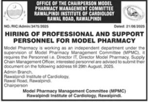Rawalpindi Institute of Cardiology announced new jobs for the position of Director It, Director Model Pharmacy, Supply Chain Management Officer. These jobs are related to Education category and Government jobs. The minimum qualification required for this job is Bachelor, Master, MS, BS.