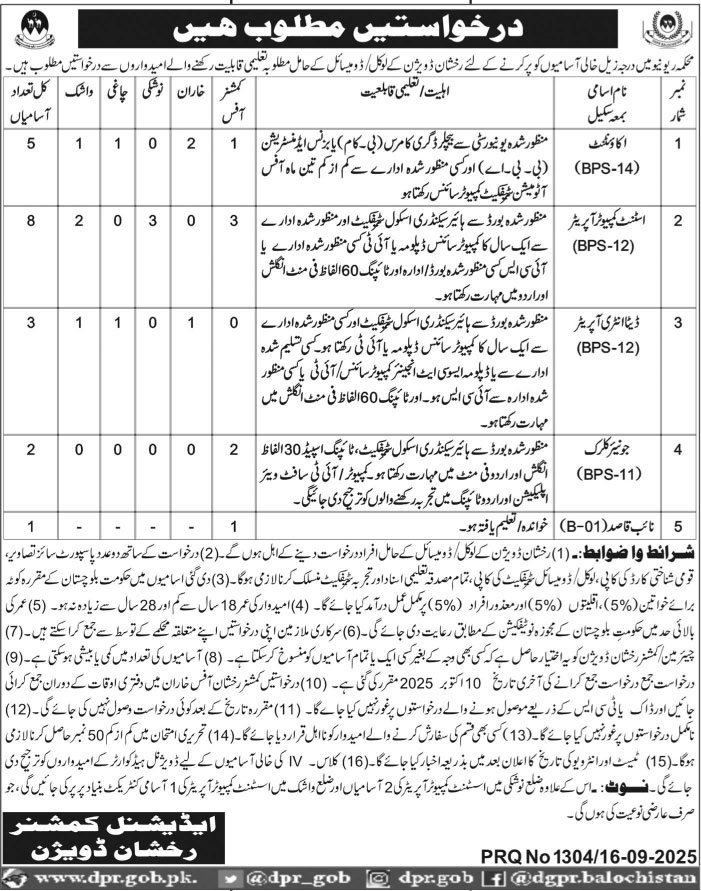 The job is located in Quetta and it is necessary for candidate to read mentioned requirements for available vacancies. Other newspaper published this job ad on 17 September, 2025. Last date to apply this job is 10 October, 2025