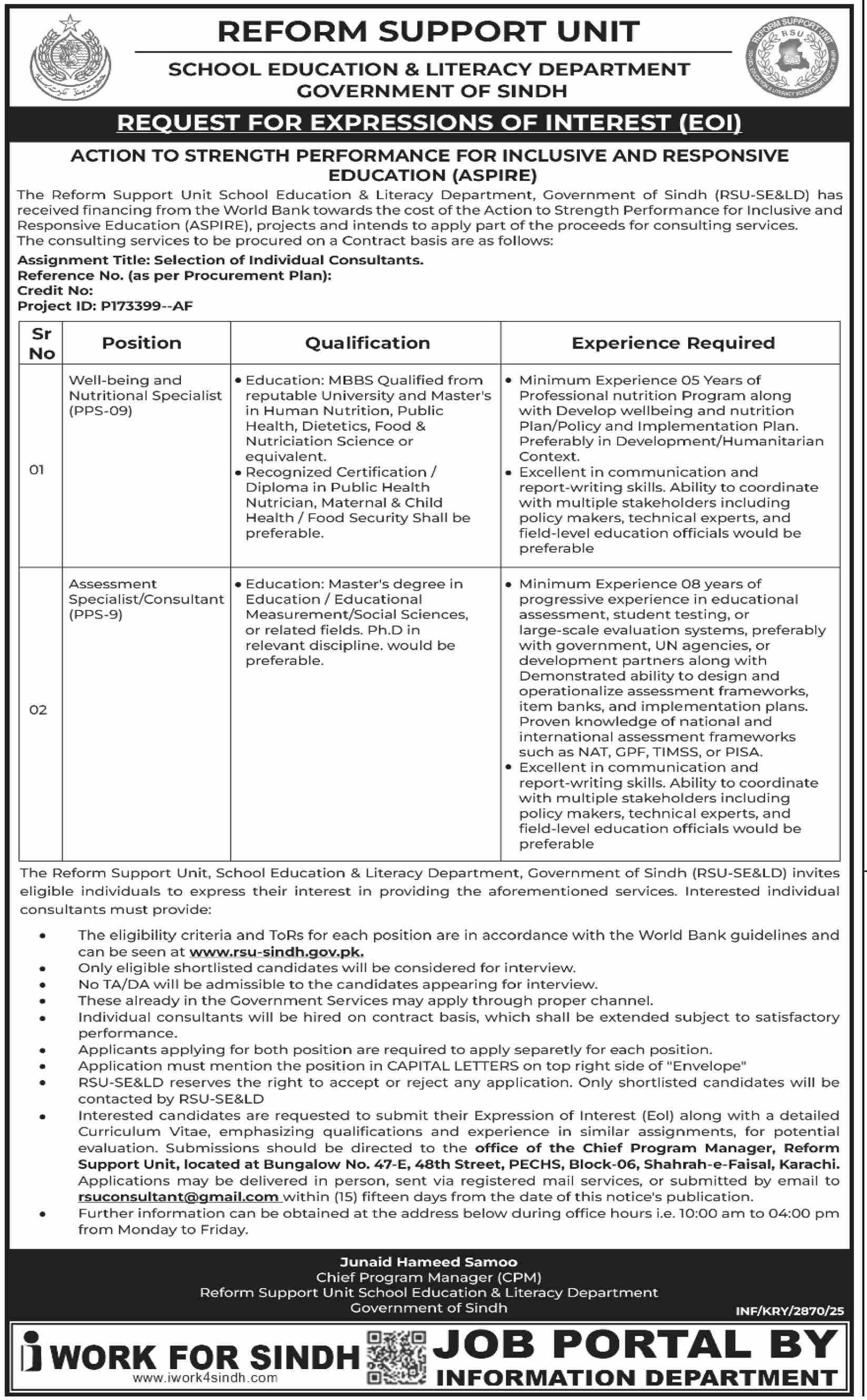 School Education & Literacy Department announced new jobs for the position of Well Being Nutritional Specialist, Assessment Specialist, Consultant. These jobs are related to Management category and Government jobs. The minimum qualification required for this job is Bachelor, Master, MS, BS.