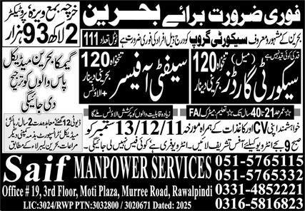 Saif Manpower Services announced new jobs for the position of Security Guard, Safety Officer. These jobs are related to Manufacturing category and Government jobs. The minimum qualification required for this job is Matric, Intermediate.