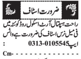 Rahat Hospital announced new jobs for the position of Staff Nurse, Nurse. These jobs are related to Medical category and Government jobs. The minimum qualification required for this job is Intermediate, Bachelor, DAE, Others.