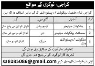 Restaurant announced new jobs for the position of Banquet Manager, Assistant Banquet Manager, Restaurant Waiter, Waiter. These jobs are related to Management category and Government jobs. The minimum qualification required for this job is Matric, Intermediate, Bachelor.