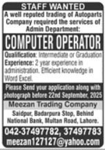 The job is located in Lahore and it is necessary for candidate to read mentioned requirements for available vacancies. Jang newspaper published this job ad on 14 September, 2025. Last date to apply this job is 22 September, 2025