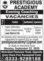 Prestigious Academy announced new jobs for the position of Teacher, English Teacher, Mathematics Teacher, Physics Teacher, Computer Science Teacher. These jobs are related to Teaching category and Government jobs. The minimum qualification required for this job is Bachelor, Master.