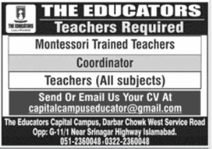 The Educators announced new jobs for the position of Montessori Teacher, Coordinator, All Subject Teacher. These jobs are related to Education category and Government jobs. The minimum qualification required for this job is Bachelor, Master, MS, BS.
