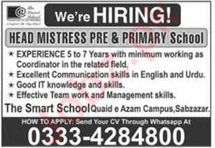 The Smart School announced new jobs for the position of Head Mistress. These jobs are related to Education category and Government jobs. The minimum qualification required for this job is Bachelor, Master, MS, BS.