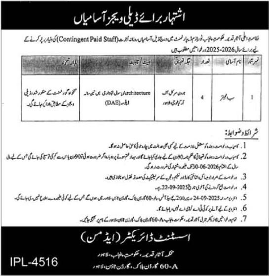 The job is located in Lahore and it is necessary for candidate to read mentioned requirements for available vacancies. Other newspaper published this job ad on 10 September, 2025. Last date to apply this job is 22 September, 2025