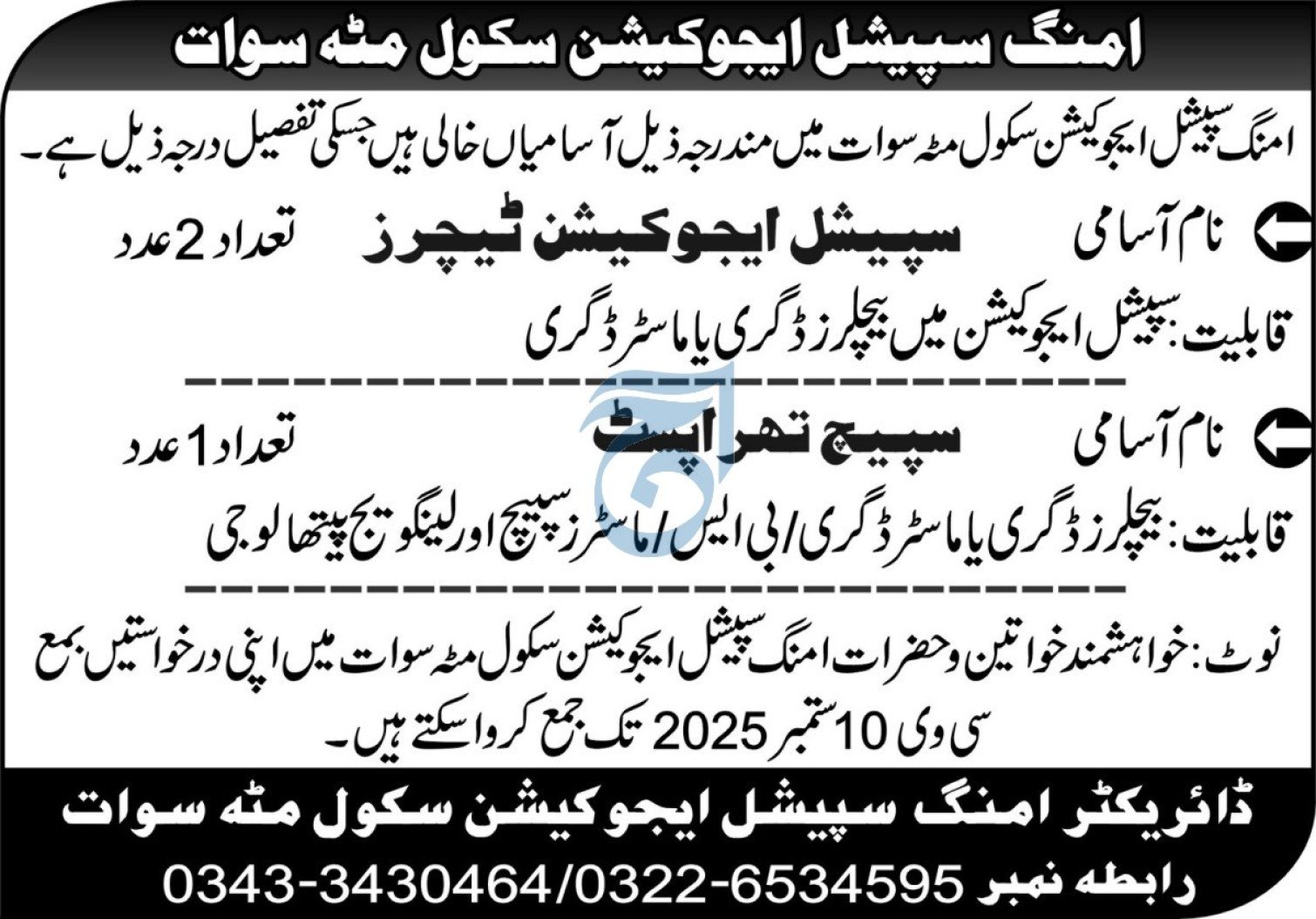 The job is located in Swat and it is necessary for candidate to read mentioned requirements for available vacancies. Aaj newspaper published this job ad on 04 September, 2025. Last date to apply this job is 10 September, 2025