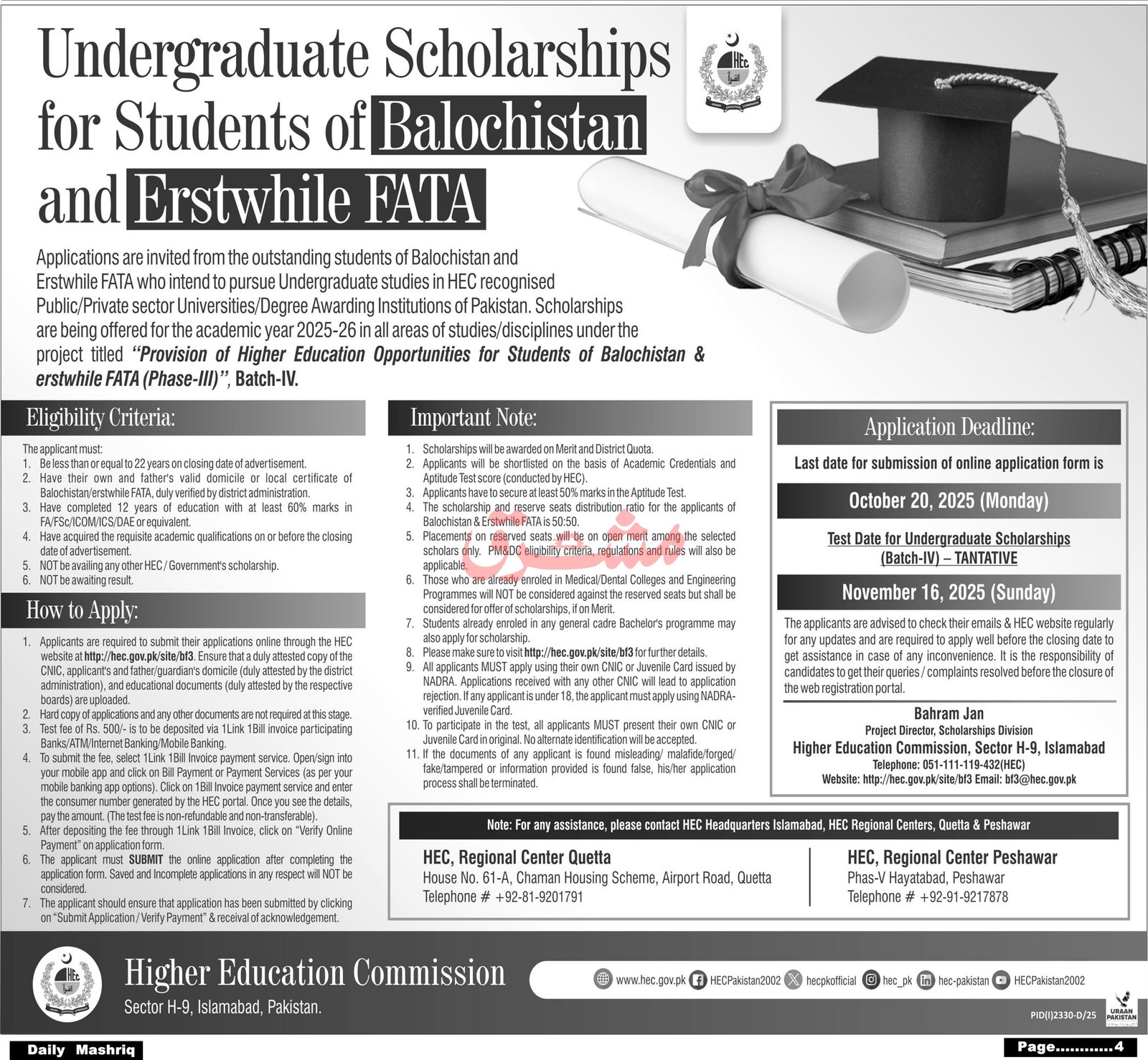 Higher Education Commission HEC announced new jobs for the position of Undergraduate Scholarship. These jobs are related to Education category and Government jobs. The minimum qualification required for this job is Intermediate, DAE.