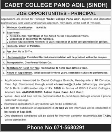 The job is located in Pano Aqil and it is necessary for candidate to read mentioned requirements for available vacancies. The News newspaper published this job ad on 13 September, 2025. Last date to apply this job is 20 September, 2025