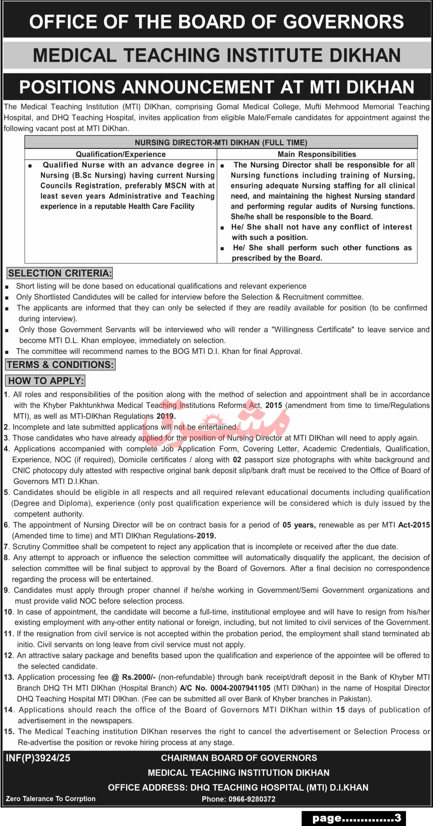 The job is located in Dera Ismail Khan and it is necessary for candidate to read mentioned requirements for available vacancies. Mashriq newspaper published this job ad on 20 September, 2025. Last date to apply this job is 02 October, 2025