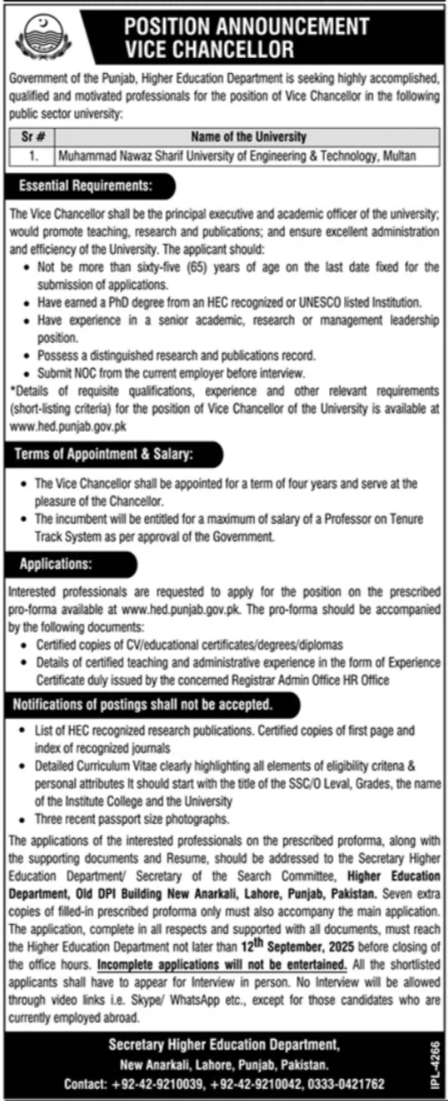 The job is located in Multan and it is necessary for candidate to read mentioned requirements for available vacancies. Dunya newspaper published this job ad on 23 August, 2025. Last date to apply this job is 12 September, 2025