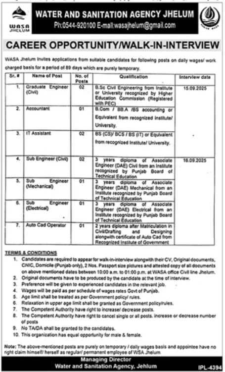 The job is located in Jhelum and it is necessary for candidate to read mentioned requirements for available vacancies. Dunya newspaper published this job ad on 02 September, 2025. Last date to apply this job is 17 September, 2025